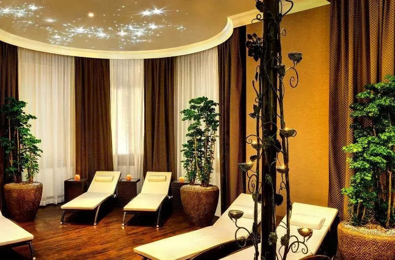 The plasterboard ceiling thanks to this mixture of crystal and starry sky lighting beautifies the relax room, which have been used in a mixed ratio for both visually appealing effect and dramatic looks....
